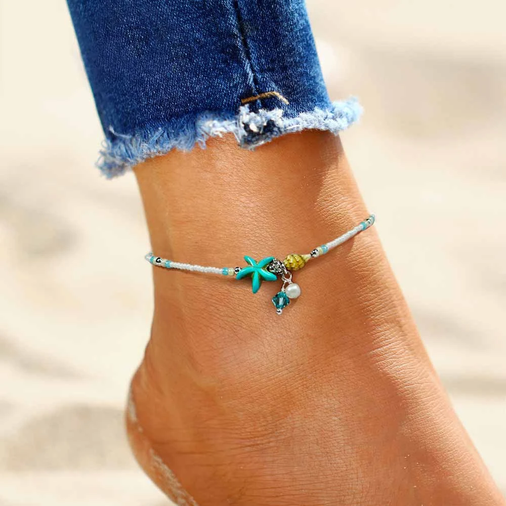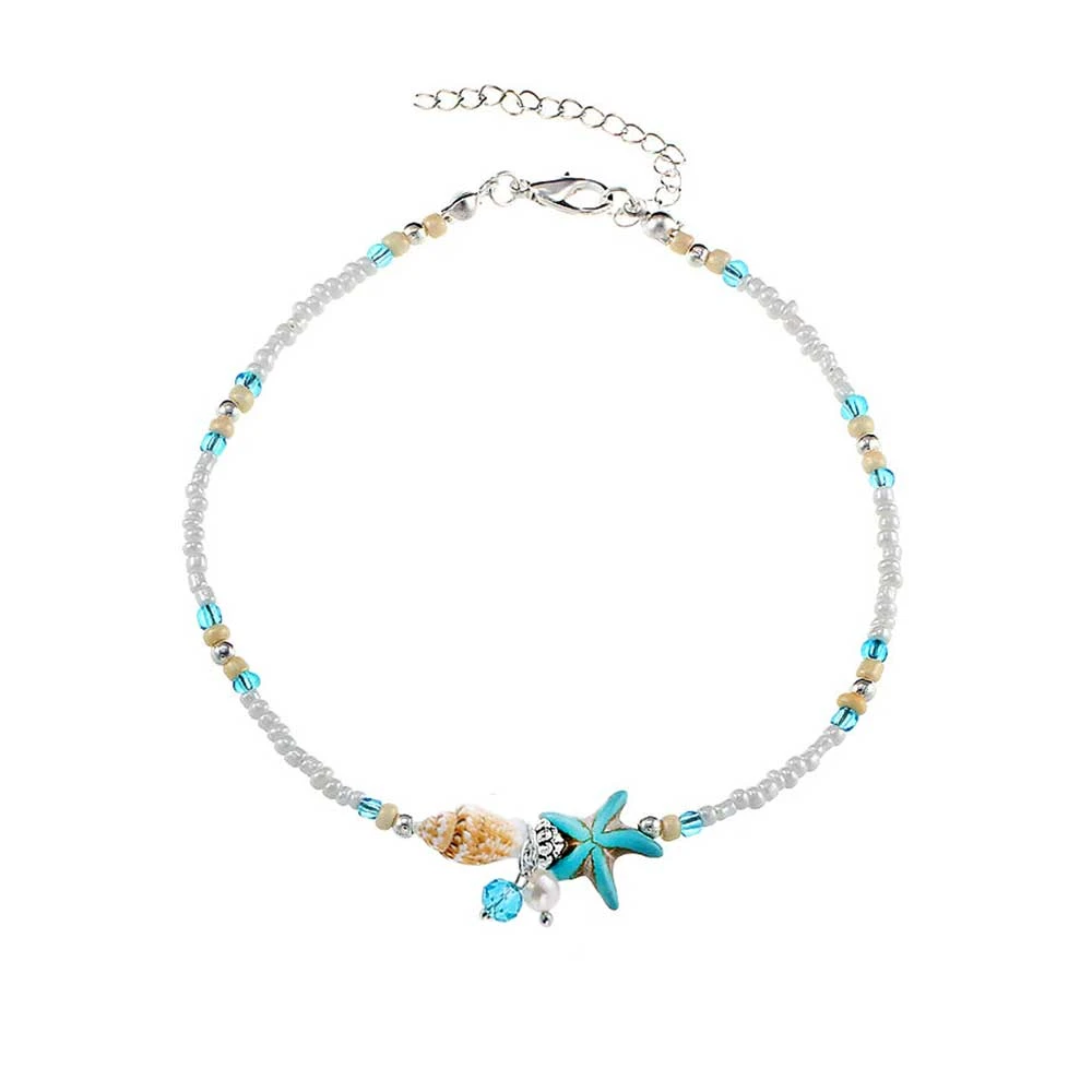 Dip your toe into the ocean in our delicate Beaded Starfish Anklet! Tiny pearls and dainty shells add to the aquatic essence of this pretty Starfish Anklet.