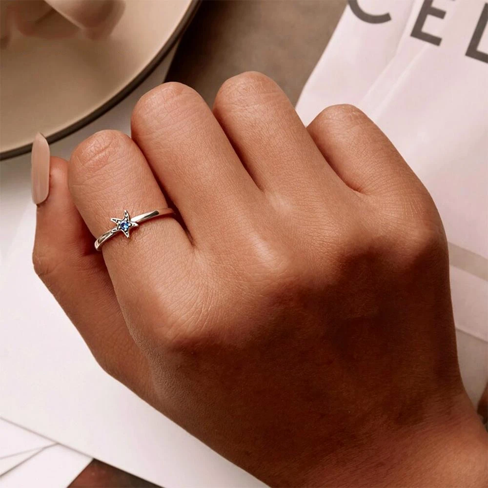 Make a splash with our delicate Blue Crystal Starfish Ring! Crafted from sterling silver, this delicate piece showcases an oxidized silver starfish embellished with a captivating deep blue cubic zirconia at its center. The delicate design looks great on its own or stack it with other ocean-inspired rings for a beautiful layered look.