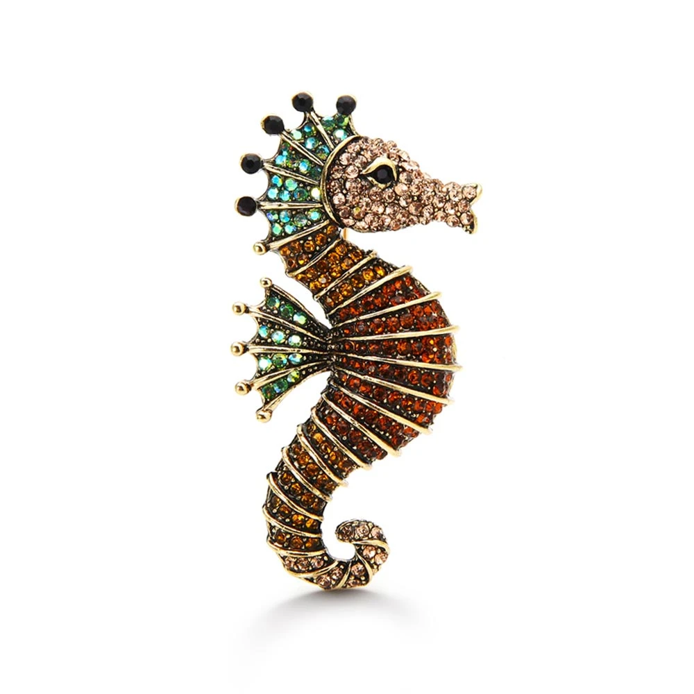 Add some vitamin sea beneath your collarbone with Our Crystal Seahorse Brooch. Hand-crafted with gorgeous Rhinestones that sparkle and dazzle in the light. The seahorse is considered to be a symbol of strength and good fortune, which makes this a perfect gift for every marine-life lover.
