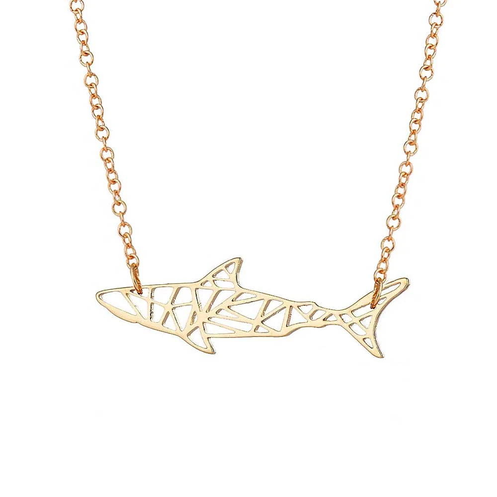 This Geometric Gold Shark Necklace is a dream come true for shark enthusiasts. Our stunning necklace features a laser-cut design of a sleek sea creature, suspended on a simple chain to create a modern and stylish look. Embrace your love for sharks and make a bold fashion statement.