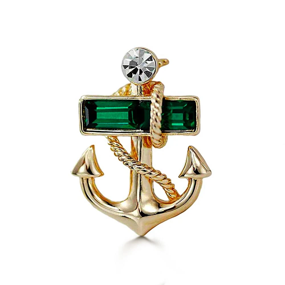 Make a statement in our Gold Anchor Brooch! Representing a new voyage in life, the anchor reminds us to stay steadfast and follow our dreams. This thalassic piece features an emerald crystal stone. Our Anchor Brooch can be worn by anyone who takes its fancy.