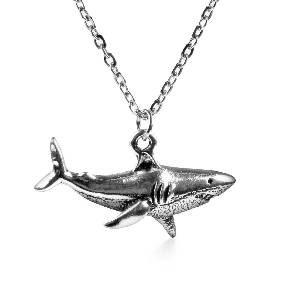 Show off your neckline with this majestic great white shark necklace. The pendant and link chain is made from rust-proof stainless steel. Positioned as if about to breach, this white shark pendant will sit powerfully between your collarbone.