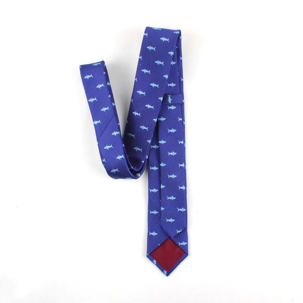 Stay at the top of the food chain by wearing our Mens Blue Shark Tie! This slim woven design is embroidered with shark-infested waters. Show who’s boss by wearing our Mens Shark Tie with the matching Thresher Shark Tie Pin.