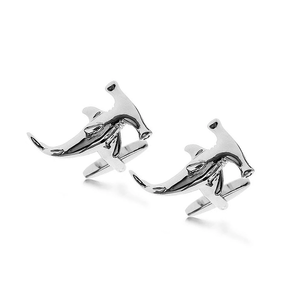 Dress up your sleeves in our Mens Hammerhead Shark Cufflinks! A slick rhodium plating accentuates the unique shape and silvery colour of this awe-inspiring creature. If you’re a fan of these impressive pelagics, you’re going to love these Hammerhead Shark Cufflinks.