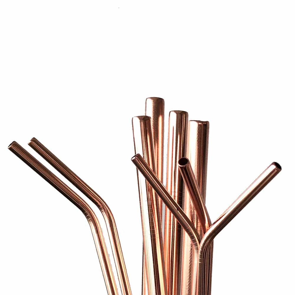 Reduce plastic waste and add a touch of elegance to your drinks with our reusable Rose Gold Metal Straws. This set includes four stainless steel straws, two angled and two straight, providing options for your drinking preferences.