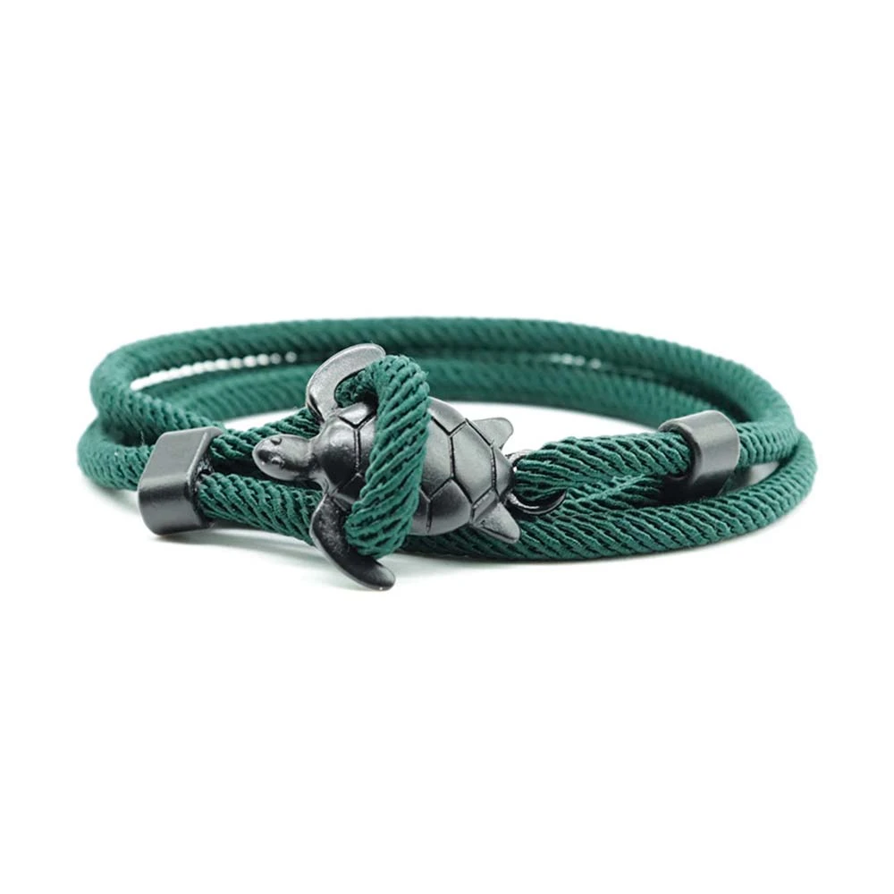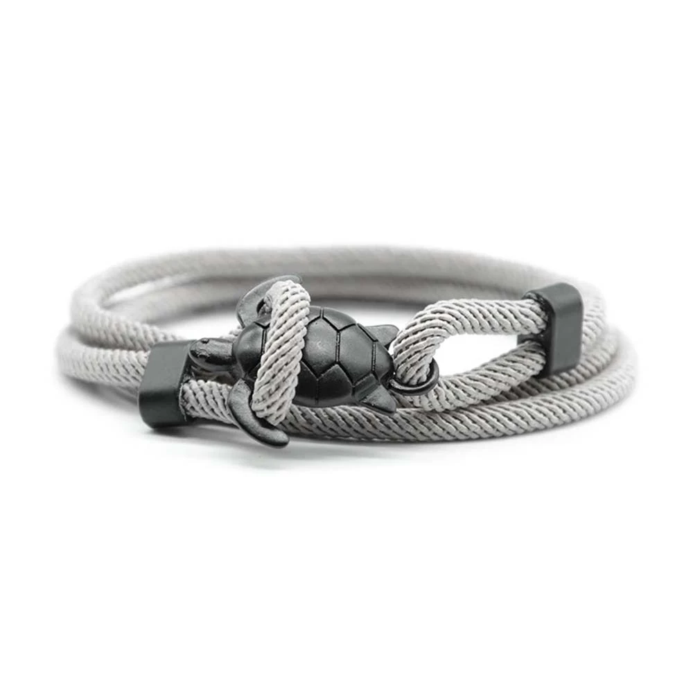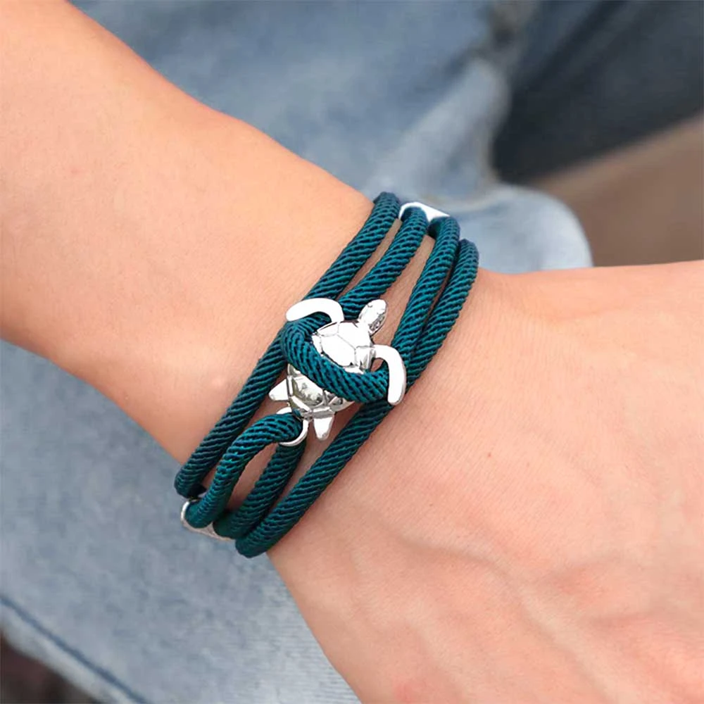 Embrace your love for the sea with our charming Sea Turtle Rope Bracelet. This new design showcases a metal sea turtle forming a clasp with its flippers, ensuring a secure fastening. With an impressive array of rope colors and metal finishes available, these bracelets are perfect for complementing every individual’s taste.