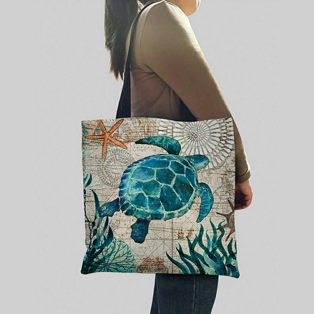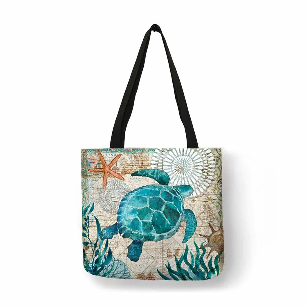 Help save the reef with our eco-friendly tote bags! These handy linen totes are foldable, practical and reusable. Our gorgeous Sea Turtle Tote Bag features an illustrative underwater scene.