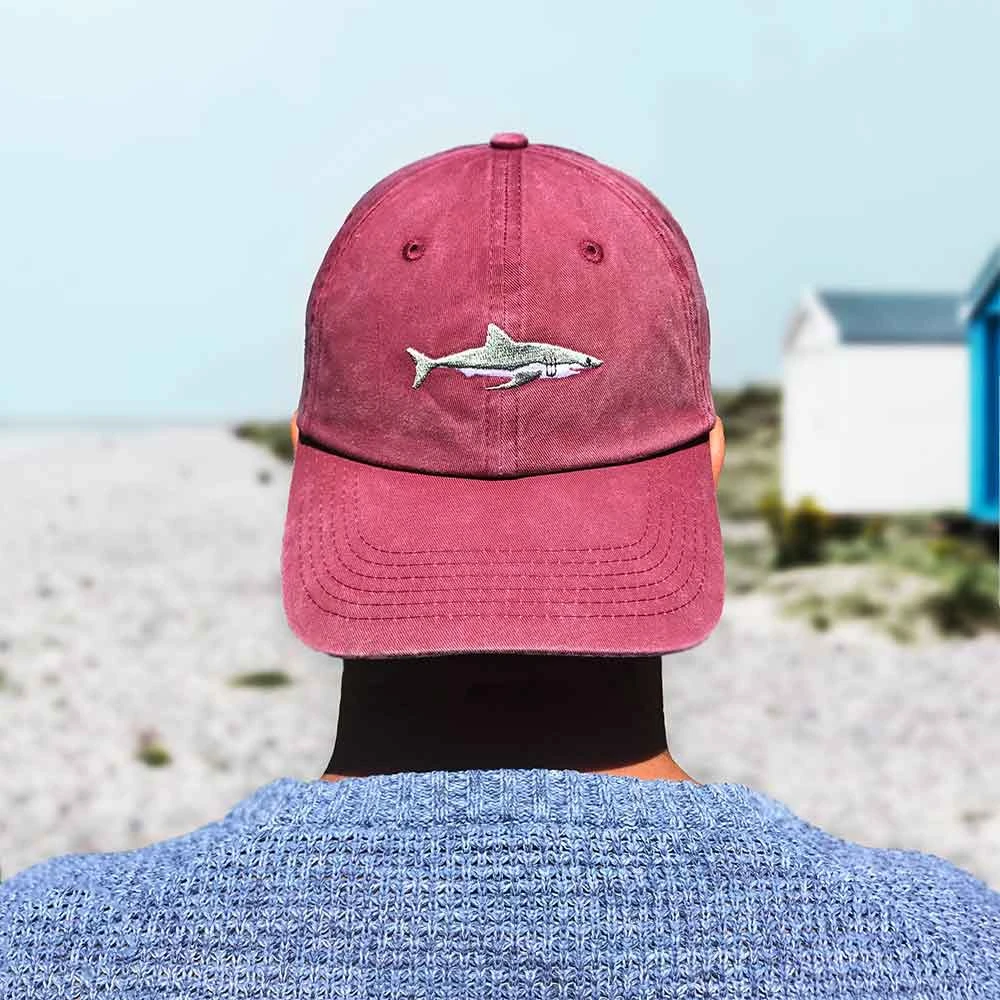 Look fin-tastic while wearing our Shark Baseball Cap in washed-out red! Made from 100% cotton this embroidered Shark Cap makes a great gift or weekend accessory for all big fish enthusiasts.